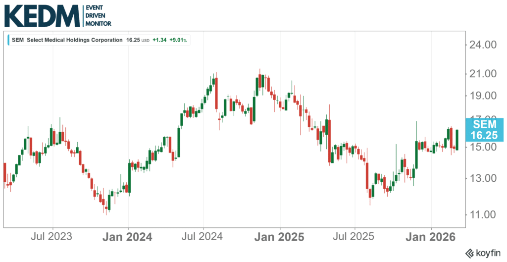 Announced Buyback Monitor: Select Medical (SEM) popped a $1bn buyback, equal to roughly half its ~$2bn market cap, extended through 2027. In November, Chairman Ortenzio (also co-founder) made an offer to take the company private at $16.00-$16.20 p/s, or just +15% premium. The buyback coming relatively soon after the bid is interesting. It feels like we’re going to see more action here.
