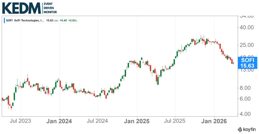 Newsletter Shorts Monitor: Muddy Waters published a short report on SoFi Technologies (SOFI). The thesis alleges that SoFi’s true personal loan charge-off rate is approximately 6.1%, nearly double the reported 2.89%, and that the company manufactures market validation for its fair value marks through subsidized, seller-financed whole loan sales that fail ASC 860 sale-recognition criteria.