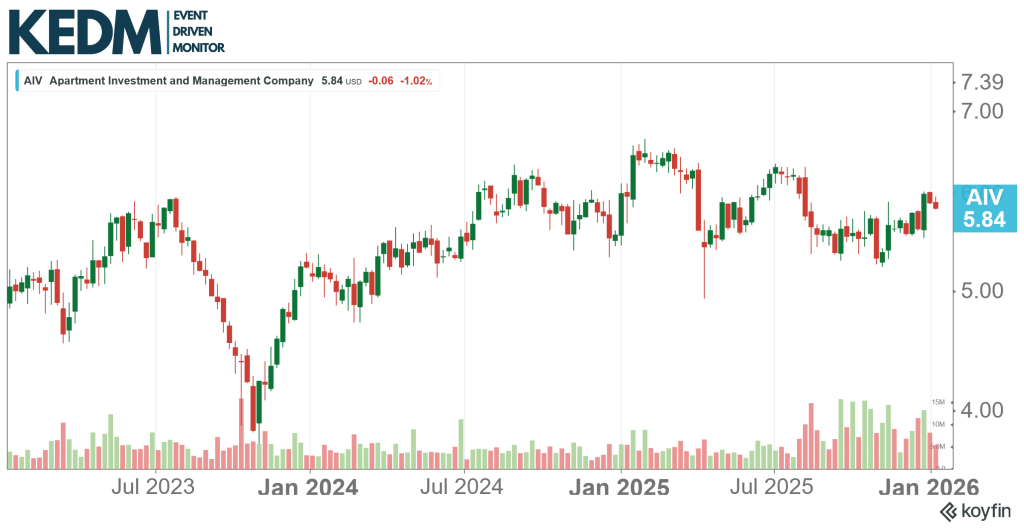A reminder that Aimco is liquidating with the intention to return capital to shareholders. They also announced the sale of another two properties at $155m, expected to close in Q1.