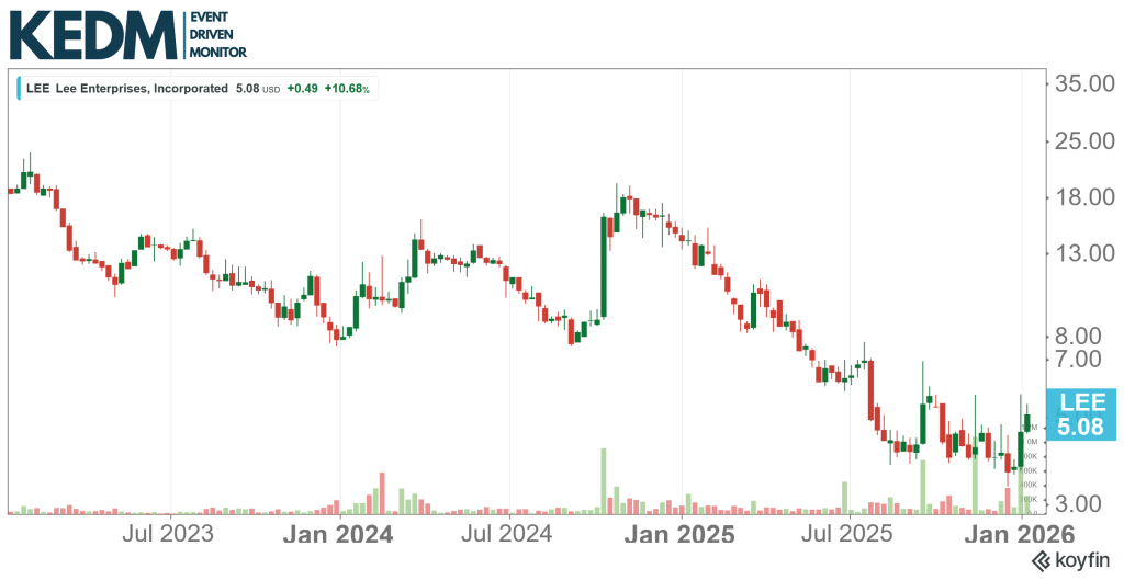 CEO Turnover Monitor: Lee Enterprises (LEE) closed a $50m private placement at $3.25 per share, with David Hoffman assuming the role of Chairman.
