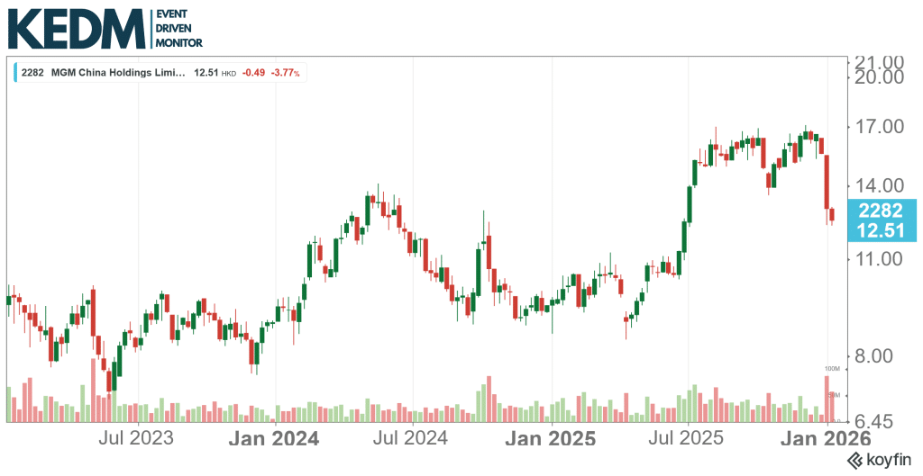 Inflection Monitor: MGM China (2282.HK) reported on Christmas Eve that it will increase the License fees it pays to MGM Resorts from 1.75% to 3.50%. MGM is a 56% shareholder. License fees will now make up 14% of EBITDA.