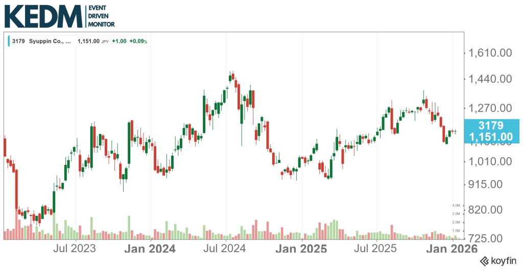 13D Monitor: Syuppin (3179.JP) shareholder VIS Advisors has called an EGM for January 22nd to propose three new outside directors, aiming to force management to exit or downsize the capital-intensive, underperforming luxury watch segment and refocus resources on the highly profitable used camera business.