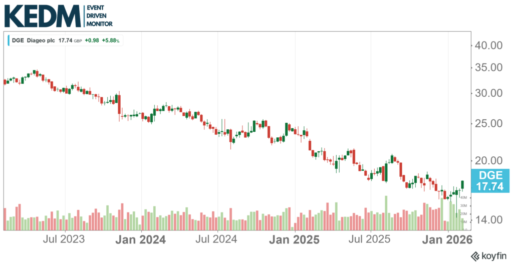 Strategic Alternatives Monitor: Another company that has been cut in half in a few years despite fundamentals remaining pretty resilient is Diageo (DGE). It took the company some time to find the right strategic moves, but they seem to have found it: shed (non-core) assets and focus on the parts that grow (shocker).