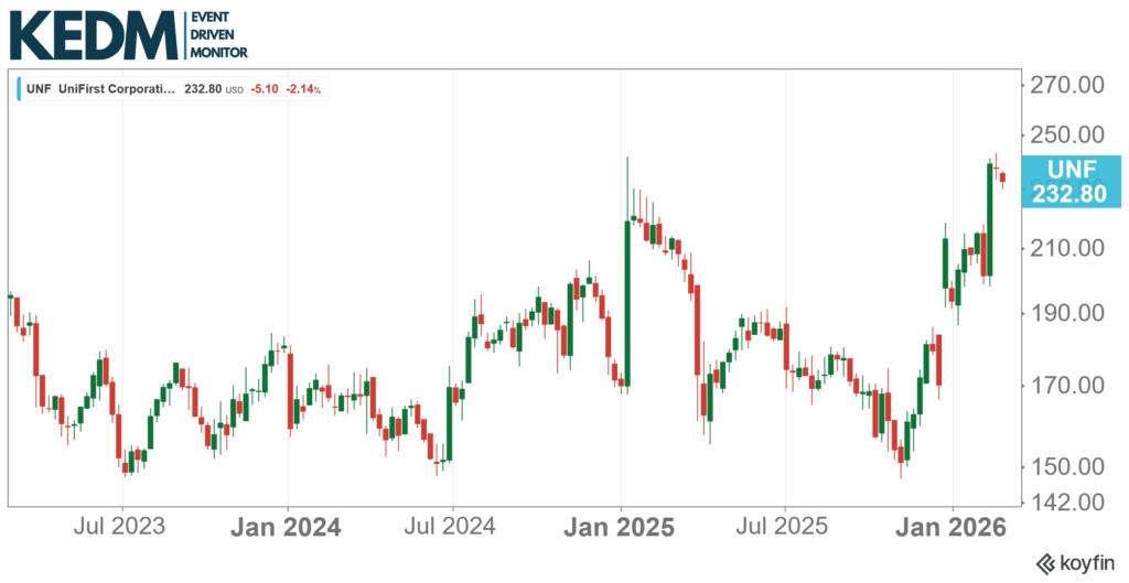 M&A Monitor: UniFirst (UNF) is once again in play as Cintas recently renewed its long‑running effort to buy the company. UniFirst confirmed it is now actively reviewing Cintas’ latest $275 p/s offer.