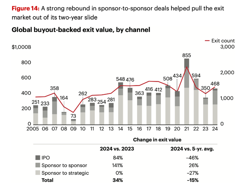We now have the 2024 data, and we see that as expected investor enthusiasm to put new money into private equity declined further with only $1.1 trillion of capital raised, down a whooping 24% yoy.