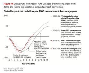 And how about the ‘IRR’s’? That highly manipulated and misleading calculation of return. The final IRR will depend on the how the investments turn out, but already the years 2020-2022, when all the money came in, are on track to be the worst vintages ever. 2020-2022 resembles 2005-2006. A quick drawdown of capital and then a long payback period.