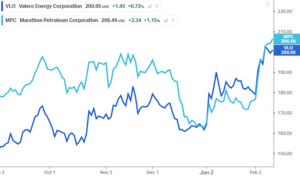 Figure: VLO and MPC stock performance since the KEDM writeup on refiners