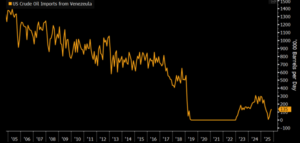 Figure: US crude oil imports from Venezuela Source: Bloomberg