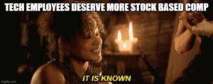 And while GAAP accounting requires companies to expense SBC, companies have gotten away with adjusting them out. Analysts on the sell side blindly copy management’s definition of adjusted earnings, and forward earnings are all based on those sell-side estimates. Keep that in mind next time someone shows you a slightly elevated S&P500 P/E multiple… most of the time those estimates exclude a very high cost.