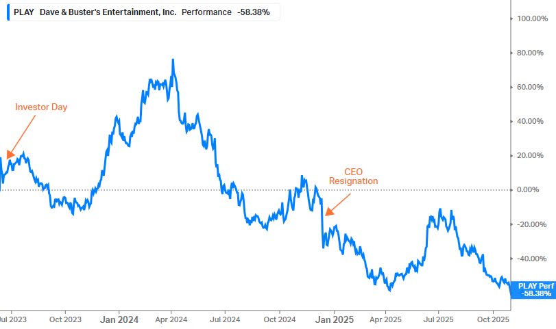 Now, let’s look at the investor days that didn’t work. In June 2023, Dave & Buster’s (PLAY) felt like it needed to present the market with their turnaround strategy.