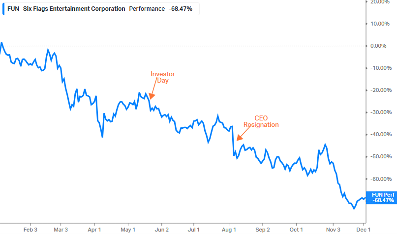 In April of 2025, Six Flags (FUN) repeated the PLAY book. After acquiring Cedar Fairs and a change in CEO, they presented the market with a plan to reinvest in F&B, turn visits around, and use that to save the company from an overleveraged balance sheet. Only 2 months later, FUN blamed the weather for falling short of those targets. Season pass sales disappointed, and they had to cut their capex budget, which was needed to reinvest in the parks. Debt metrics ballooned, and the CEO could look for another job.